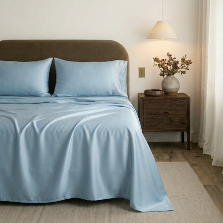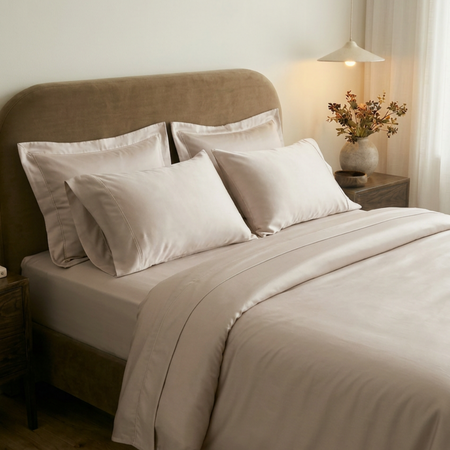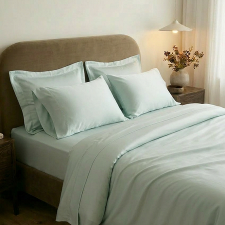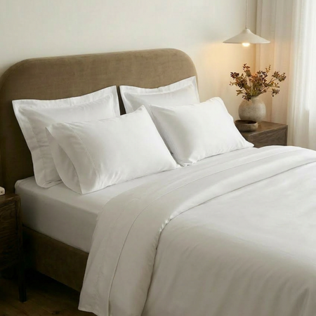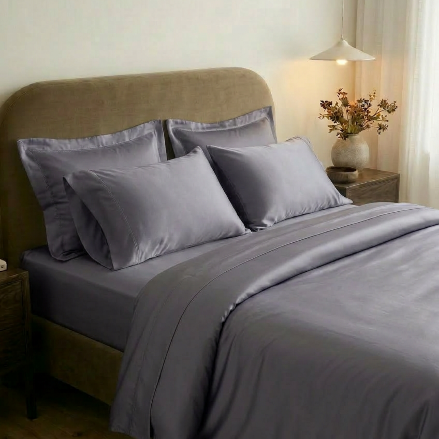 Enjoy the unmatched softness of 300-thread count sateen Eucalyptus TENCEL (Certified Lenzing: 324100118160), elevating your sleep experience to new levels of comfort.