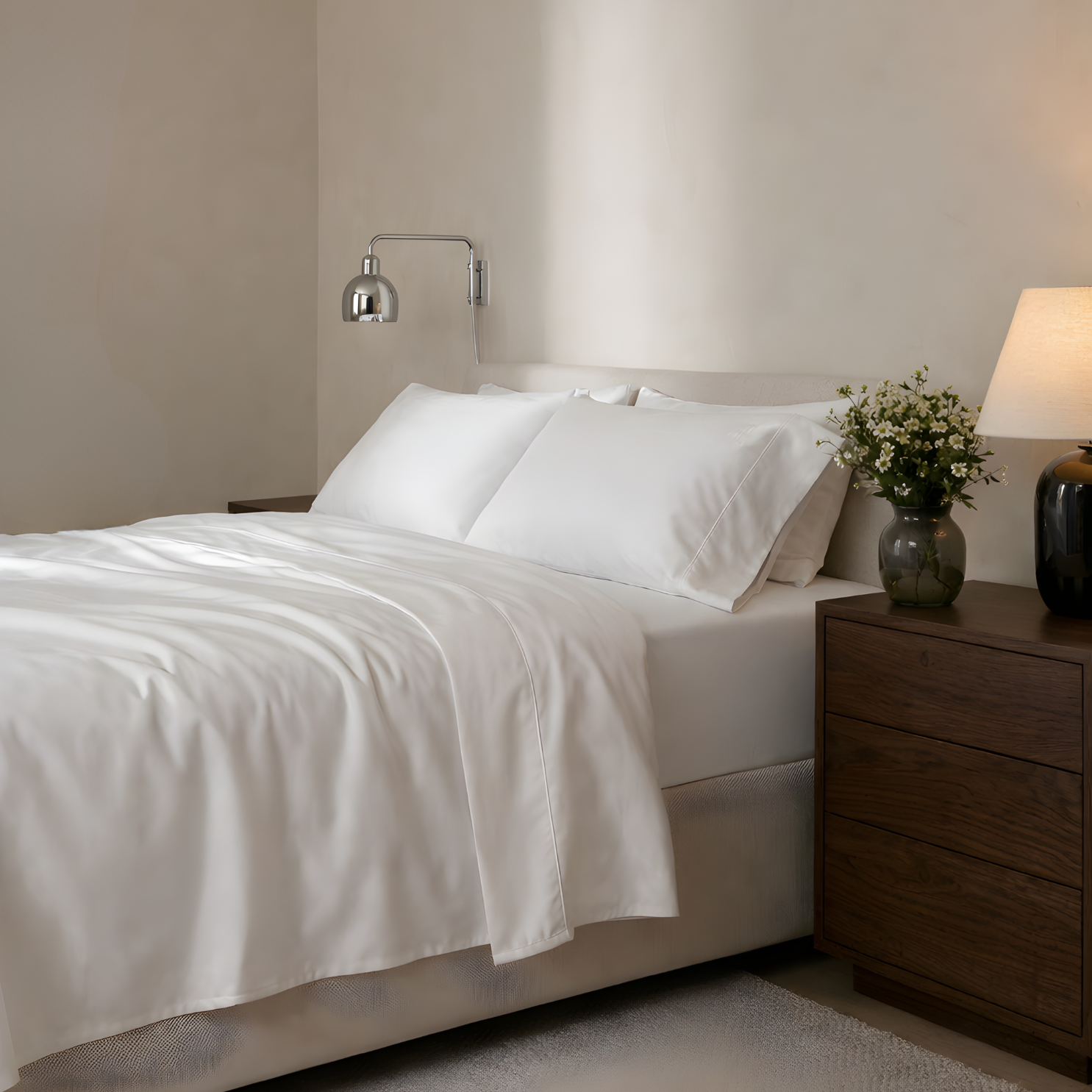 Eucalyptus fabric regulates temperature, keeping you cool, comfortable, and dry all night.